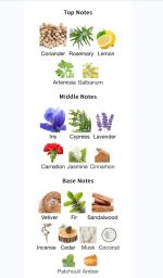 نت پایانی:وتیور، صنوبر، چوب صندل، سدر، مشک، نارگیل، نعنا هندی
